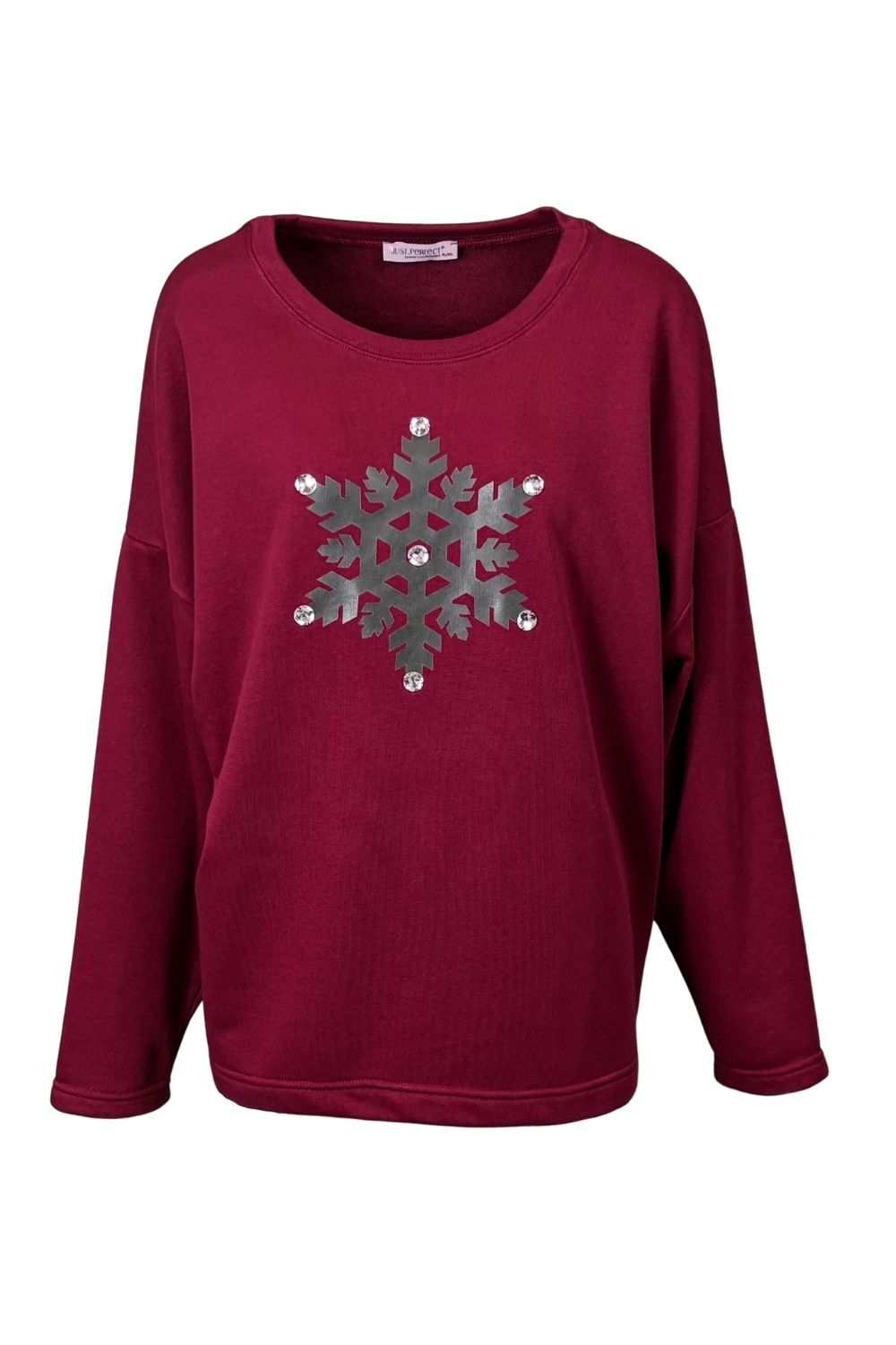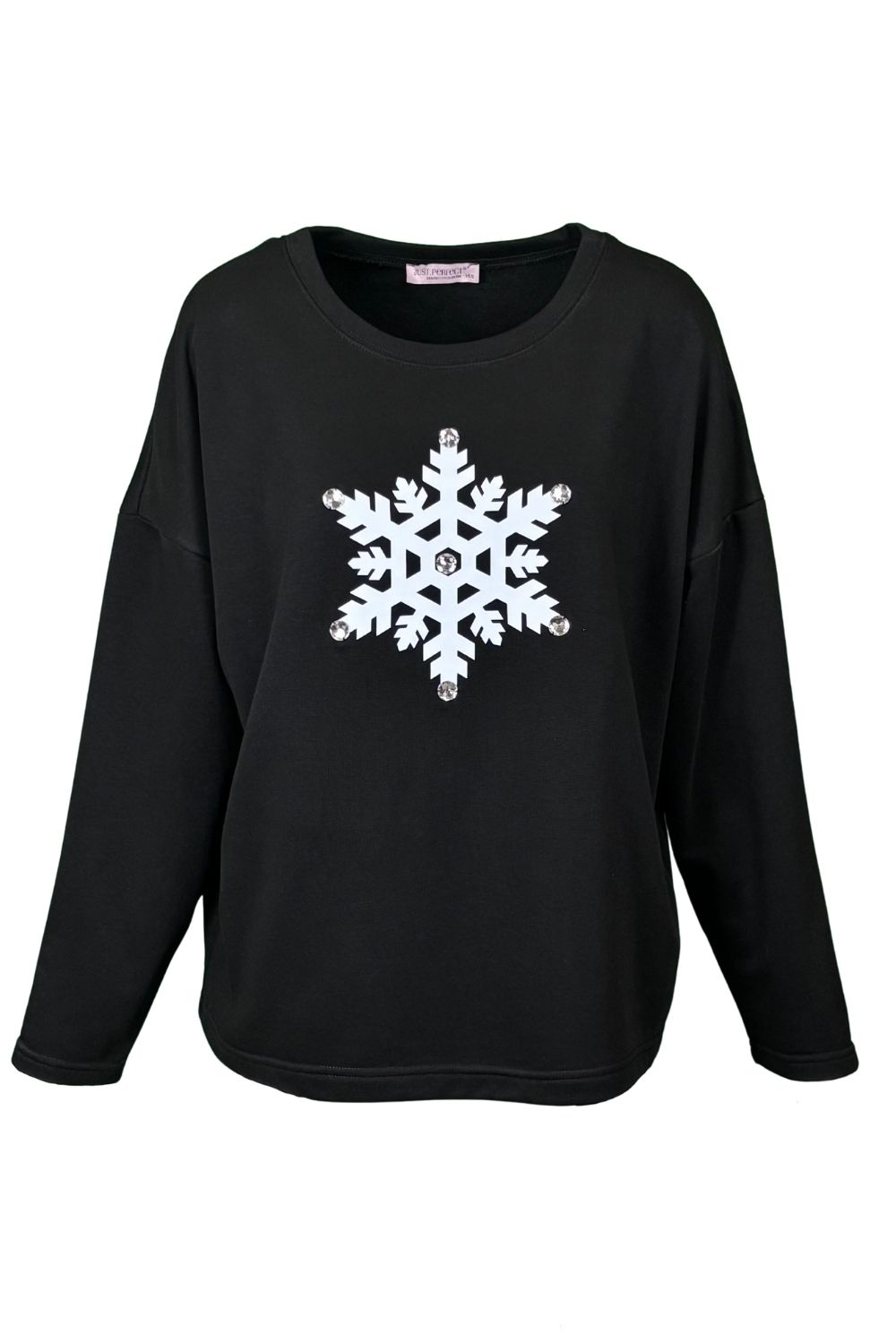 Φούτερ μπλούζα με τύπωμα χιονονιφάδα και κεντημένα στρας. Άνετη γραμμή που συνδυάζεται τέλεια με το φούτερ παντελόνι του.