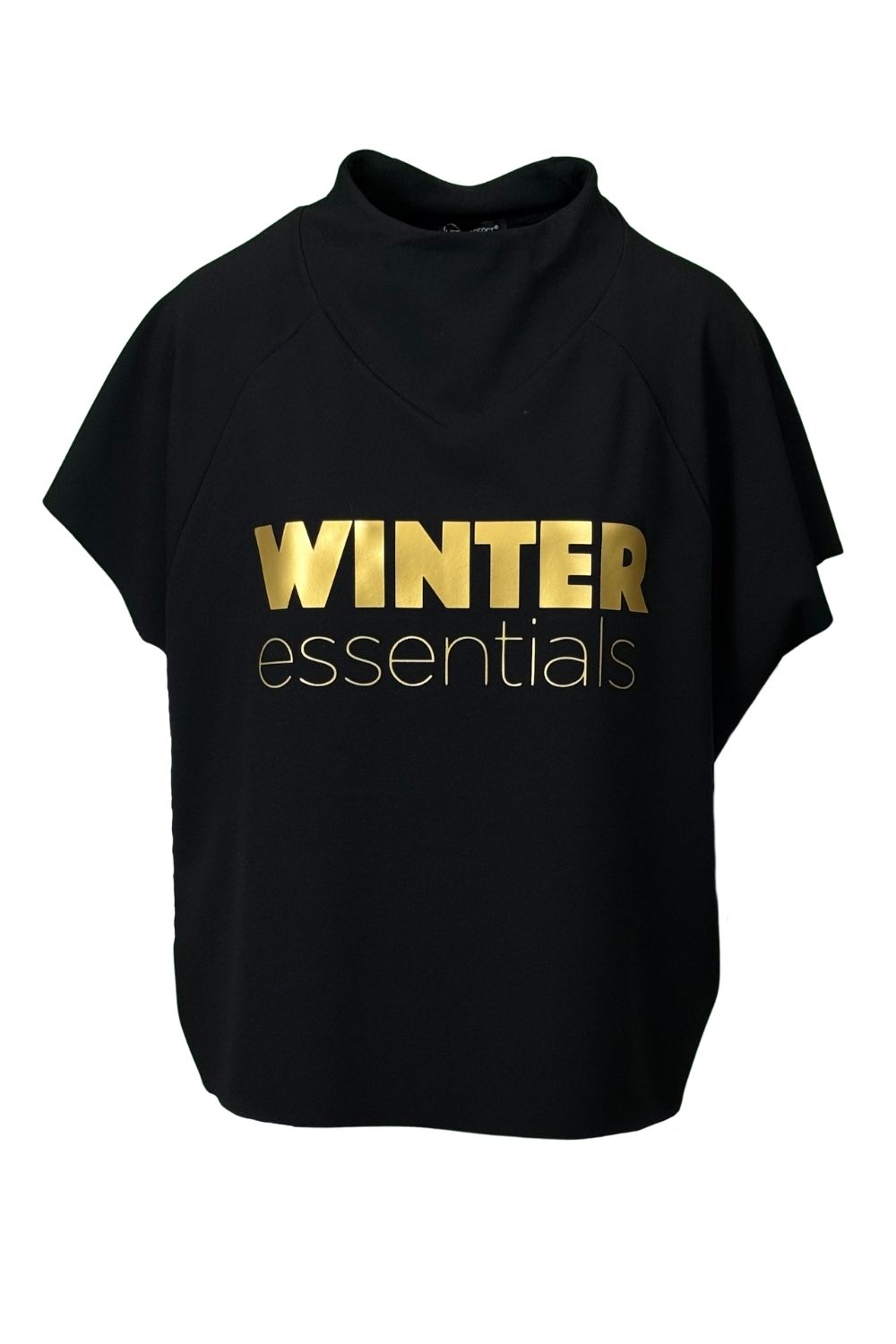 Μπλούζα σε ιδιαίτερο πατρόν, με ψηλό γιακά και χρυσό τύπωμα.