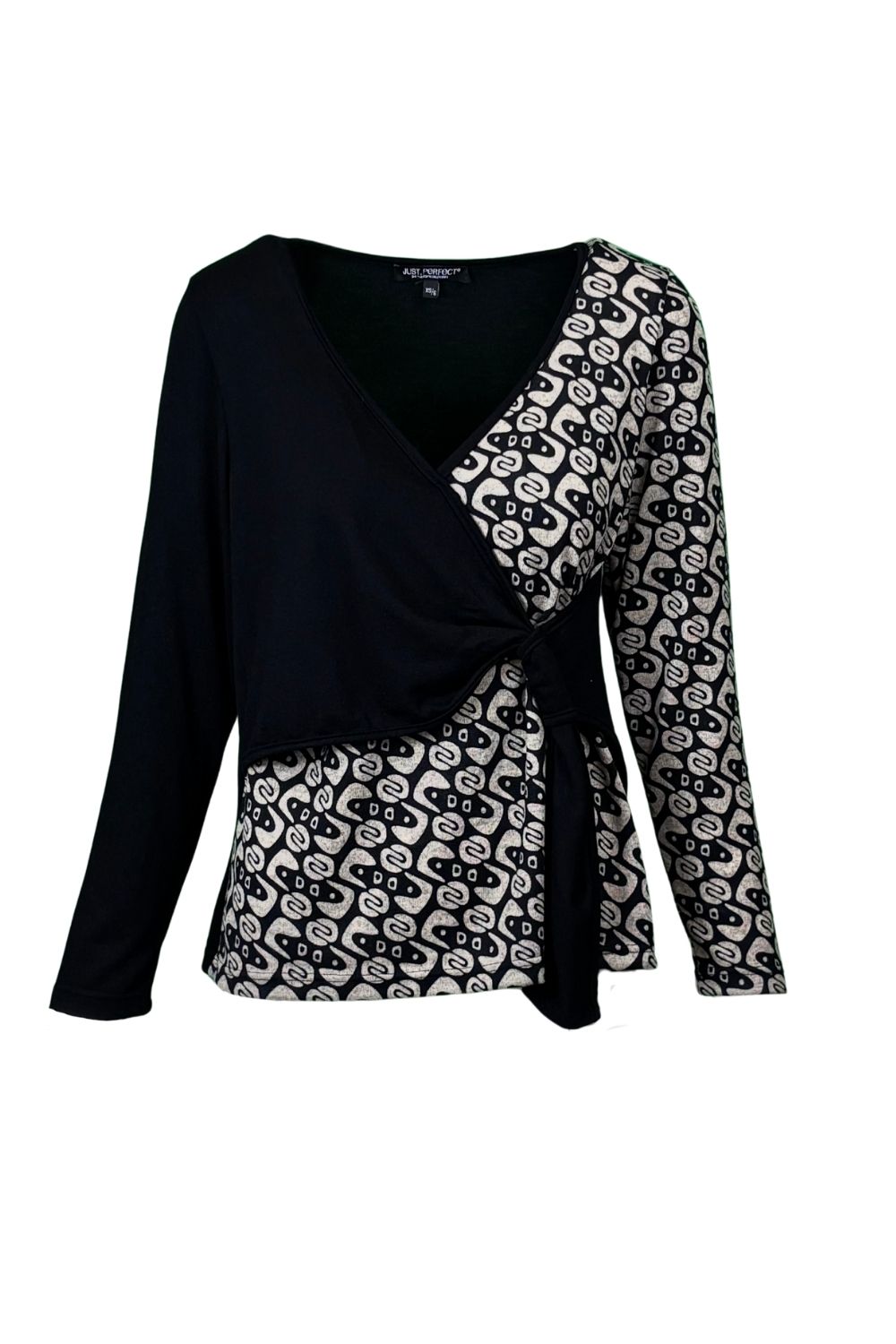 Μπλούζα κρουαζέ, δίχρωμη από μαλακό πλεκτό ύφασμα.