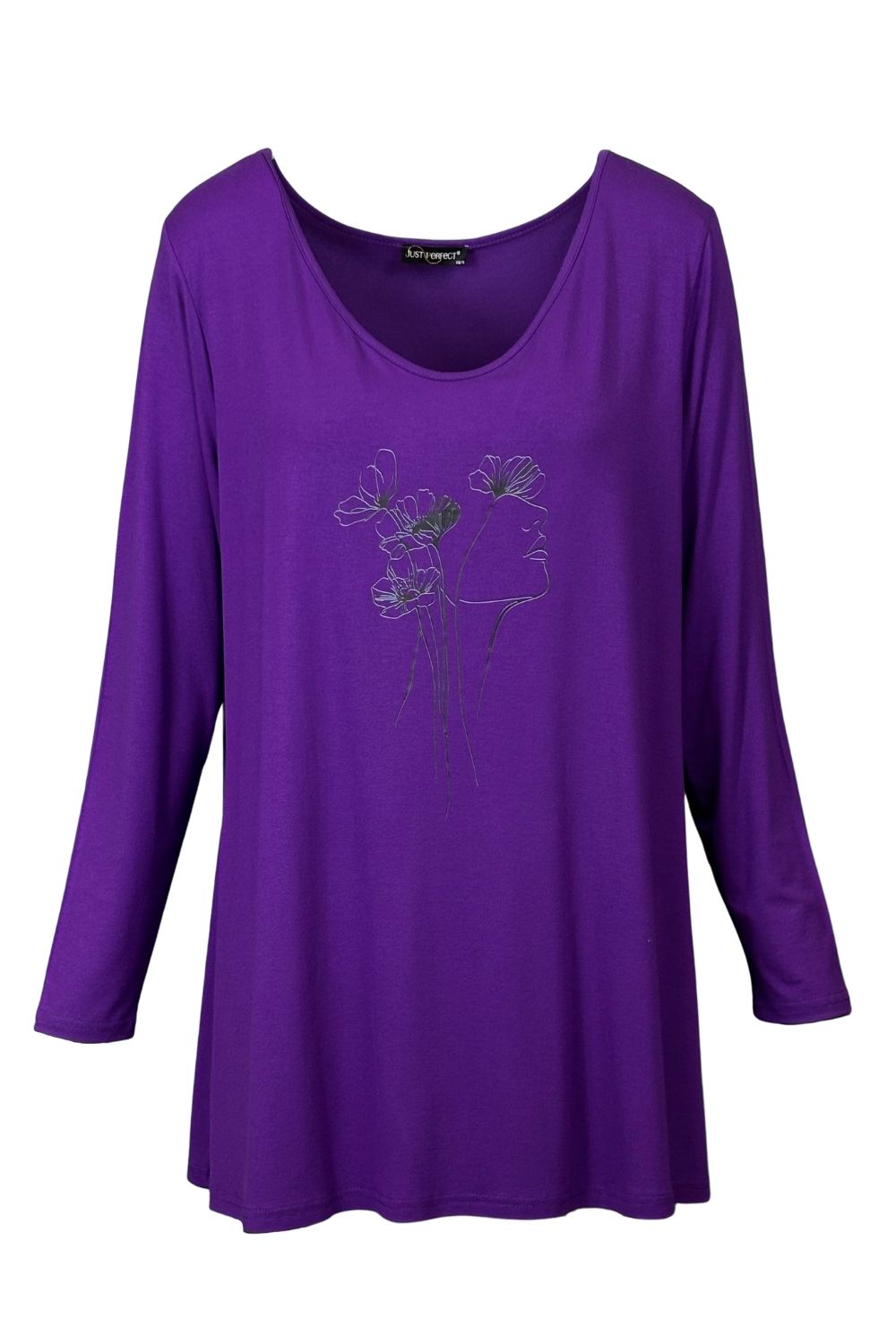 Μπλούζα βισκόζ, με τύπωμα, λαιμόκοψη, με πιο μακρύ μήκος.