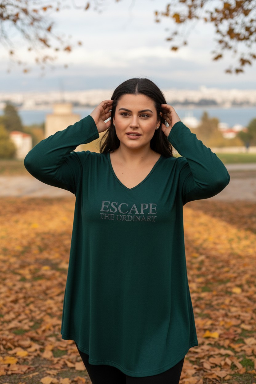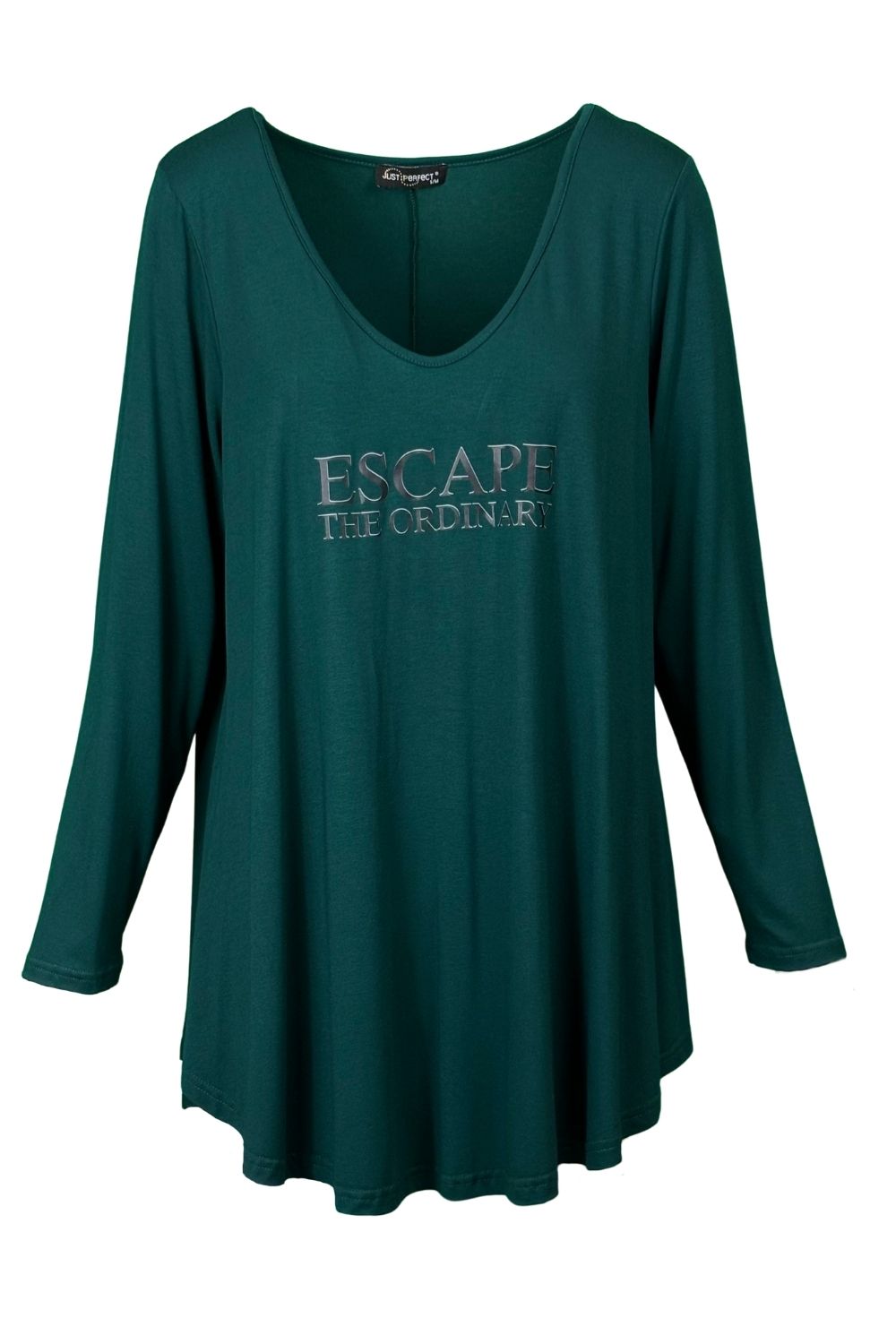 Μπλούζα βισκόζ,με μακρύ μήκος, στάμπα και λαιμόκοψη.