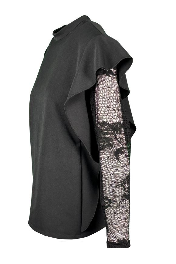 Μπλούζα Με Βολάν και Μανίκια από Δαντέλα