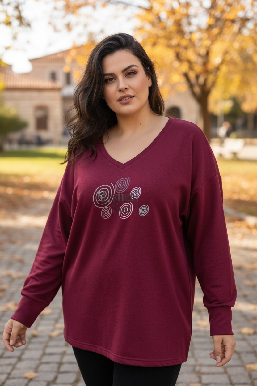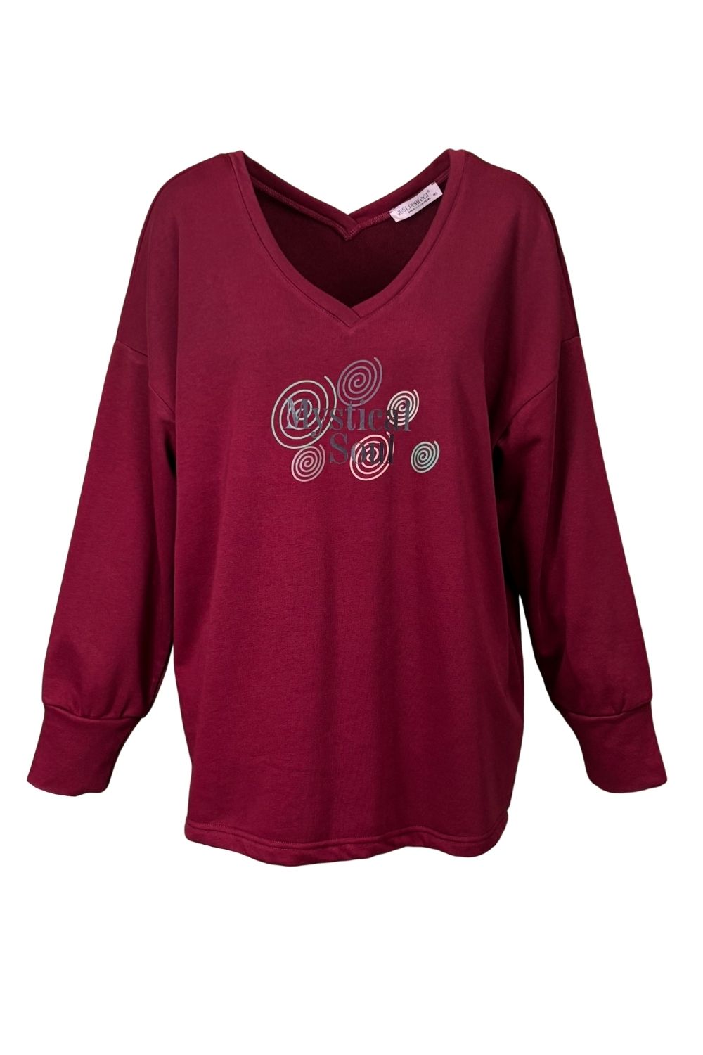 Μπλούζα φούτερ με τύπωμα,V μπροστά και πίσω. Άνετη για κάθε μέρα και μπορεί να συνδυαστελι με το παντελόνι φούτερ στις ίδιες αποχρώσεις.