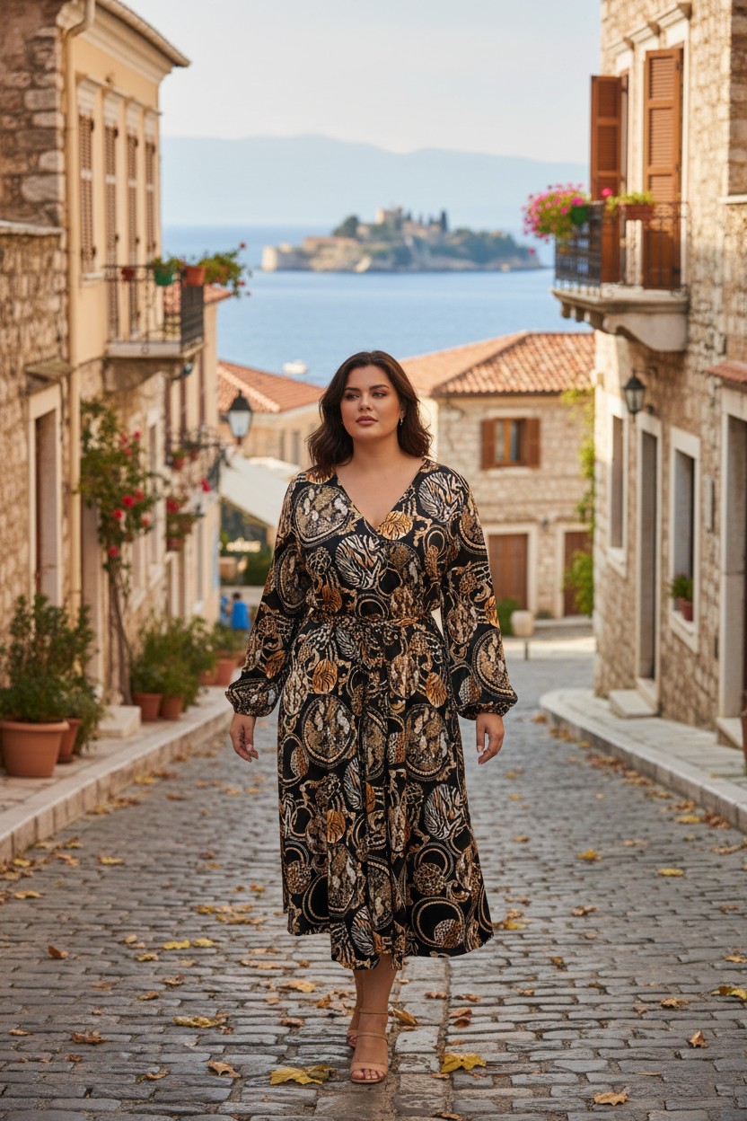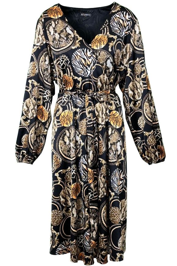 Φόρεμα σατέν, με κρουαζέ μπούστο ζωνάκι στη μέση και εσωτερική φόδρα.