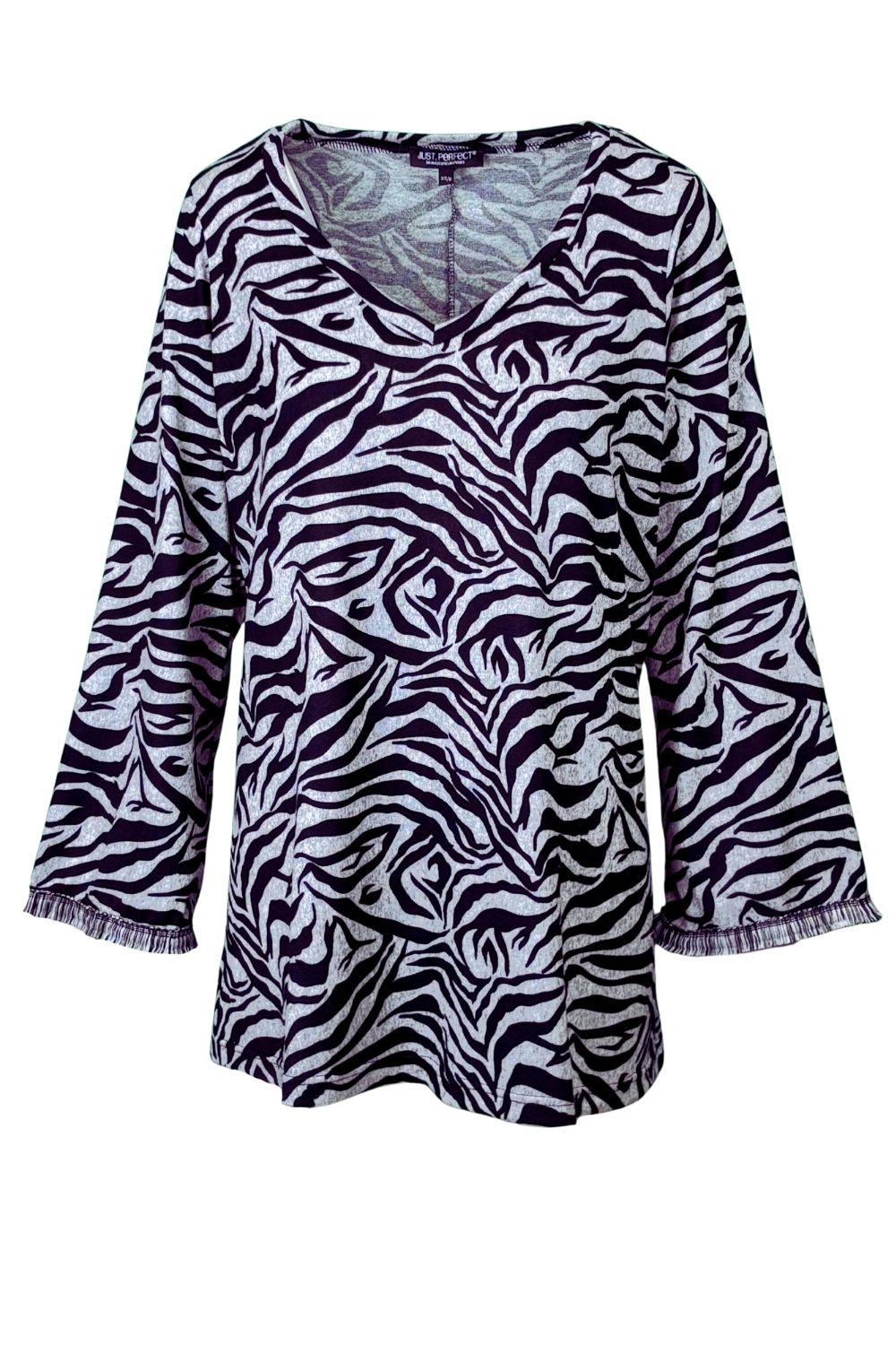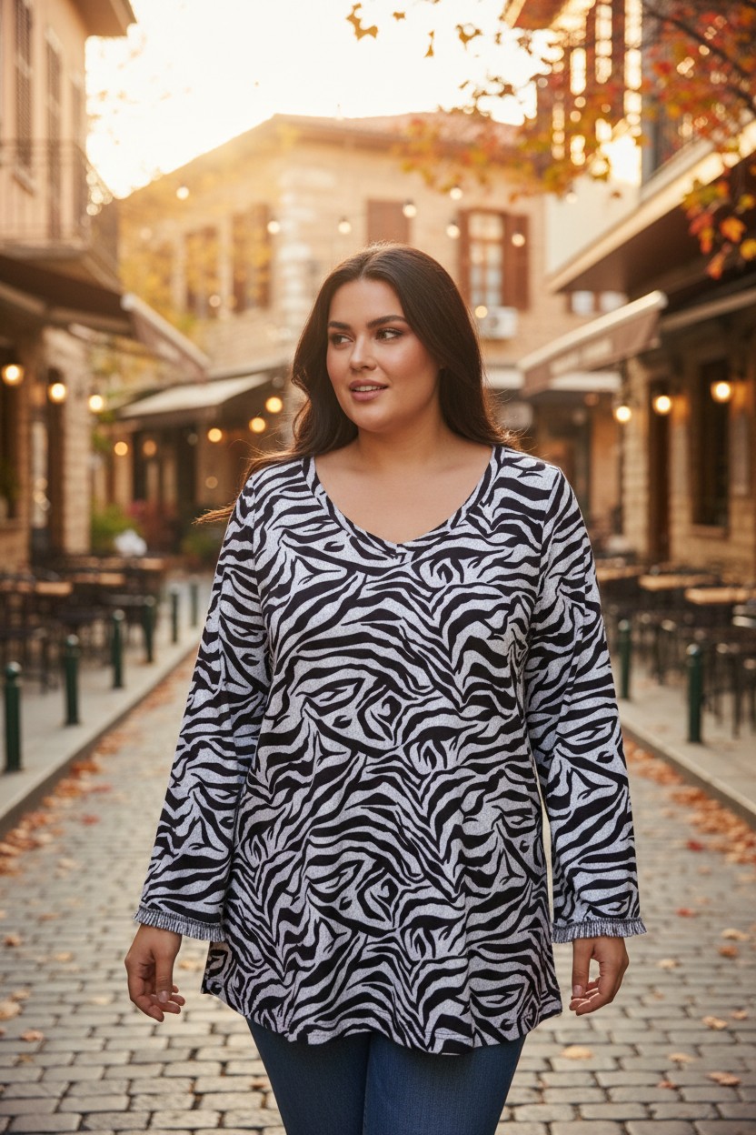 Μπλούζα με V,σε animal print απόχρωση και κροσσάκι στο τελείωμα του μανικιού.